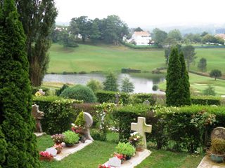 Dominé par son église, organisée en paliers formant autant de balcons, le cimetière d’Arcangues est l’un des plus beaux du Pays-Basque. Près de l’église se trouve un monument en forme de croix de Malte érigé sous le règne de la Reine Victoria, qui perpétue le souvenir des soldats anglais et français morts au cours de la bataille de la Nive, et dont un épisode se déroula autour du château et de l’église. Lors de ses séjours à Biarritz au début du siècle, le Roi Edouard VII d’Angleterre ne manquait jamais de venir s’y recueillir.