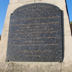 Le monument aux morts central possède néanmoins une plaque commémorative qui n’est pas banale : il y est mentionné que lors d’une "soirée de la séance permanente de la Convention du 1er septembre 1792", sous la présidence de Hérault de Séchelles, "la municipalité de Massy composée de deux cents citoyens actifs vient d’armer et équiper quarante cinq hommes qui partiront pour se rendre dans une de nos armées aux frontières". L’Assemblée "ordonne qu’il sera fait mention du patriotisme de cette commune".