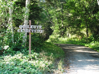 Il règne dans le cimetière Quileute de La Push une ambiance sereine pourtant : si les tombes les plus anciennes sont matérialisés par des stèles, les plus récentes sont généralement de simples tas de terre surmontés d’une croix et d’une infinité de babioles rappelant le souvenir du défunt.