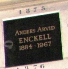 – Arvid ENCKEL (1884-1967), journaliste, écrivain et traducteur finlandais dont les cendres se trouvent ici malgré sa mort à Helsinki Case 1875.