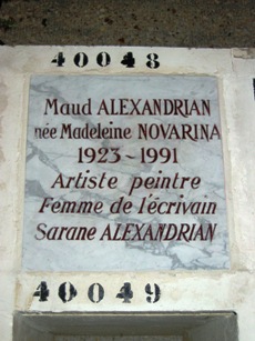 fondateur, en 1995, de la revue d’avant-garde Supérieur Inconnu, Sarane ALEXANDRIAN (1927-2009). Il publia de nombreux livres, dont certains ont connu un succès international, tel Le Surréalisme et le rêve. Dans la même case se trouve les cendres de son épouse, la peintre surréaliste Maud ALEXANDRIAN (Madeleine Novarina : 1923-1991). Case 40 048.