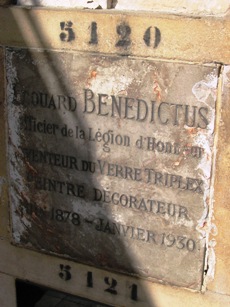 – Edouard BENEDICTUS (1878-1930) : peintre, écrivain, mélomane, homme de science et inventeur. Grand connaisseur des techniques des arts appliqués, il leur apporta des innovations (notamment dans les domaines du cuir, de l’ameublement, de la fresque…). Comme le précise sa plaque funéraire, il fut l’inventeur du verre feuilleté, appelé triplex, utilisé en particulier pour les parebrises automobiles. Case 5120.