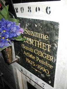 – Suzanne BERTHET (Sarah Geiger : 1903-1990) : peintre française d’origine polonaise, elle fut l’élève d’André Lhote et fréquenta les milieux artistiques de Montparnasse. Case 20 806.