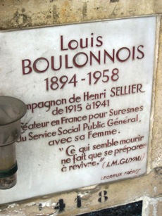 – Louis BOULONNOIS (1894-1958) : secrétaire à la mairie de Suresnes, il fut un proche collaborateur d’Henri Sellier. Il fut un réformiste municipal et social. Case 6417.