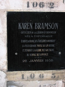 – Karen BRAMSON (1875-1936) : écrivaine danoise en langue française, elle fut l’auteure de romans d’œuvres théâtrales. Case 1062.