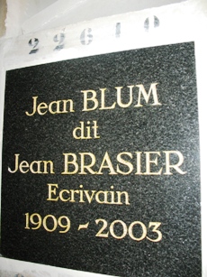– Le journaliste et écrivain Jean BRASIER (Jean Blum : 1909-2003), qui collabora à Hara Kiri. Case 22 610.