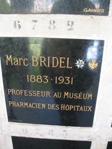 – Marc BRIDEL (1883-1931) : pharmacien des hôpitaux, il fut professeur au Museum. Case 6782.