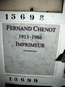 – L’imprimeur et lithographe Fernand CHENOT (1913-1986), qui travailla beaucoup en collaboration avec le monde artistique. Case 15 698.