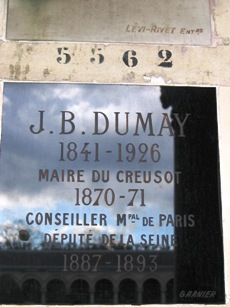 Bonjour. Pour Jean Baptiste Dumay, son urne se trouve dans une colonne à l’entrée du cimetière Saint-Laurent au Creusot (71) depuis le 3 septembre 2010 à la demande de la famille. Ayant des connaissance à la mairie du Creusot, j’ai pu assister personnellement à cette cérémonie. Au Père-Lachaise il ne reste plus que le cénotaphe avec la plaque. Merci et bonne journée