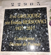 – Eve GRILIQUEZ (Eveline Herscovici : 1927-2017) : comédienne, interprète, elle