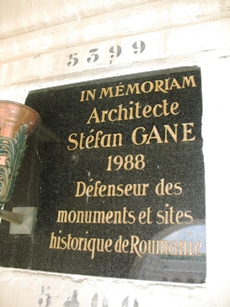 – L’architecte roumain Stéfan GANE (+1988), fondateur dans son exil parisien en 1985 de l’Association internationale pour la protection des monuments historiques et sites de Roumanie chargée de dénoncer les méfaits du mégalomane Ceausescu. Case 5399.