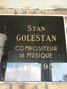 – Le compositeur roumain Stan GOLESTAN (Stan Gole ?teanu : 1875-1956), qui étudia avec Vincent d’Indy, Albert Roussel et Paul Dukas de 1897 à 1903. Il fonda en 1905 la revue L’Album Musical. Critique musical au Figaro, il fut également professeur de composition à l’École normale de musique de Paris. Ses compositions s’inspirent du folklore de son pays. Case 1540.