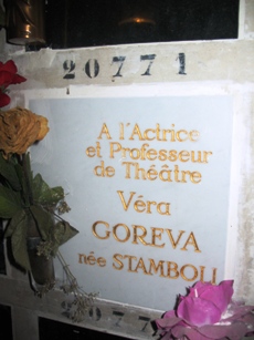 – L’actrice russe Véra GOREVA ( ?), qui travailla avec Stanislawski. Elle était professeur de théâtre à Paris. Case 20 771.
