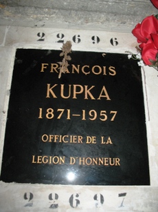 Vienne, il s’installa à Paris en 1896. Il gagna sa vie comme illustrateur et affichiste, et se fit connaître comme dessinateur satiriste pour des revues comme L’Assiette au beurre. Exposant ses toiles au Salon d’Automne, Kupka développa un style personnel, fondé sur un emploi arbitraire des couleurs. En 1909 il fut profondément impressionné par le manifeste futuriste : son travail s’orienta résolument vers l’abstraction, en associant mouvement, couleur et musique. Peu de temps après, Kupka exposa au Salon des Indépendants avec les peintres cubistes, bien qu’il ne voulut être assimilé à aucun mouvement. Le terme d’« orphisme » fut créé par Guillaume Apollinaire en référence à ses compositions circulaires (Les Disques de Newton), similaires à celles de Robert Delaunay, mais Kupka n’adhère pas non plus à ce concept. Après la guerre, à laquelle Kupka participa au sein des rangs français, il amorça de nouvelles recherches vers une peinture plus figurative. Dans les années 1920, il poursuivit ses recherches sur la lumière et le mouvement, et au début des années 1930, fut l’un des membres-fondateurs du groupe « Abstraction-Création », créé en opposition à la peinture de la Nouvelle Objectivité allemande et au surréalisme. Il évolua vers une peinture en noir et blanc, strictement orthogonale. Son œuvre fut plus amplement reconnue après la guerre. Case 22 696.