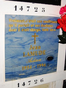 – L’architecte Jean LAMUDE (1954-1996), qui fonda en 1989 l’atelier d’architecture et d’urbanisme Tectône. Il réalisa plusieurs grands immeubles dans Paris. Case 14 725.