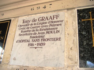 – Tony de GRAAFF (1916-1989) : ancien secrétaire de Jean Moulin, il fut le fondateur, en 1976, d’Hôpital Sans Frontière. Case 6947.
