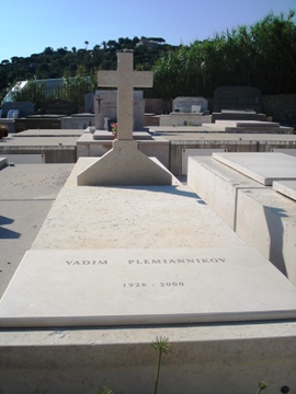 Dans un premier temps, Vadim fut inhumé dans un enfeu, à l’entrée du cimetière, à gauche dans le mur. La plaque de l’enfeu se trouve aujourd’hui sur son caveau.