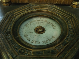 – Une relique constituée d’un petit « éclat » d’os crânien, présumé appartenir à saint Jean-Baptiste, est présenté dans une vitrine (un coffre en bois avec vitre) dans le transept nord. En outre, un crâne (seul rescapé des destructions de la Révolution) est conservé dans le « trésor » près de la sacristie, il est considéré comme étant celui de saint Jean-Baptiste : soupçon renforcé par le fait que sur ce crâne manque exactement un « éclat » de la taille de celui présenté comme étant une relique du saint dans le transept. Ce crâne fut ramené en 1206 lors de la Quatrième croisade par un chanoine de Picquigny, Wallon de Sarton. Le reliquaire est composé, d’une part de cristal de roche du XIIIe siècle, et d’autre part d’une pièce d’orfèvrerie reconstitution du XIXe, faite par l’orfèvre parisien Placide Poussielgue-Rusand, sur base de l’œuvre de Ducange du XVIIe, détruite à la Révolution.