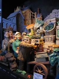 toute une série de personnages travaillant aux Halles, une manière de rappeler l’importance de l’édifice dans l’histoire du marché central de Paris.