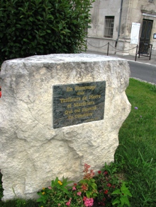 – Face à l’entrée du cimetière, une roche portant plaque rend hommage « aux tailleurs de pierre et marbriers qui ont façonné ce cimetière ».