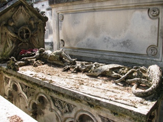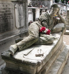 - L’étonnante tombe de l’ouvrier Dominique Servent (+1877), un lampiste de 32 ans représenté se reposant allongé sur son tombeau et appuyé sur son coude, ses outils à ses pieds. On ignore l’auteur du monument.