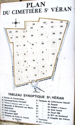 Ainsi naquit le cimetière Saint-Lazare : c’est ainsi que s’appelait à l’origine Saint-Véran, avant qu’on ne le change par assimilation avec l’appellation du quartier où s’élevait un monastère de bénédictines créé sous l’invocation de ce saint, et détruit par les troupes de François Ier en 1536. Il était bien plus petit qu’aujourd’hui, un simple quadrilatère comprenant l’actuelle carré 2 et une partie des carrés 1,3 et 16 ! L’ancienne entrée, supprimée en 1840, donnait sur la route de Lyon, c’est pourquoi les plus vieux tombeaux se concentre dans cette partie désormais excentrée du cimetière.