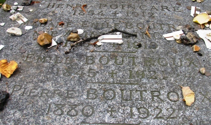 Y repose également le fils d’Emile et d’Alice, le mathématicien et historien des sciences français Pierre BOUTROUX (1880-1922). Ce dernier est surtout connu pour ses travaux sur l’histoire et la philosophie des mathématiques. Il occupa la chaire de mathématiques à l’Université de Princeton de 1913 à 1914 et il fut titulaire de la chaire d’histoire des sciences au Collège de France de 1920 à 1922. Son œuvre la plus connue est Les Principes de l’analyse mathématique, qui présente un panorama complet des mathématiques de son temps.