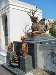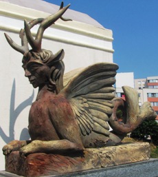 Ainsi, deux bustes le représentant mi-homme, mi-lion - rappel de la Belle et la Bête (voir ci-dessous). L’un d’eux fut volé en janvier 2016 et l’autre retiré par précaution.