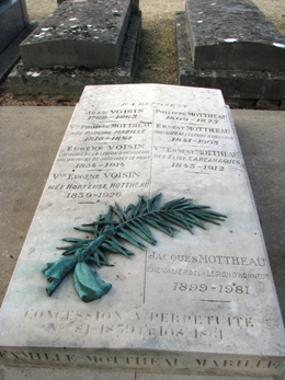 professeur à l’École des Beaux Arts de Rennes. Membre du Comité supérieur de l’Enseignement des arts décoratifs, Jacques Mottheau reçut des commandes de l’État, notamment pour l’Élysée, et fut Président de la Société des Artistes Décorateurs. Concepteur de mobiliers, il s’est particulièrement intéressé à l’art breton. Dans son tombeau repose également Eugène VOISIN (1834-1914), qui fut maire de Joinville-le-Pont.