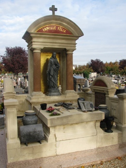 – La tombe Félix, et son Christ montrant le Sacré Coeur, l’une des rares statues du cimetière.
