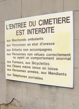 – Même si l’on est pas un adorateur des "marchands ambulants", des "armes à feu" ou des "portables", on reste perplexe devant l’arrêté liberticide placardé devant l’entrée du cimetière !