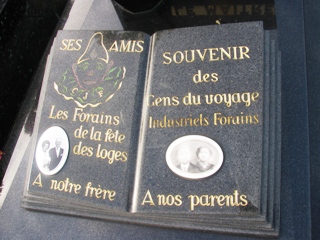 – On remarque une proportion importante de tombes de forains, signalées par des plaques rappelant leur ancienne activité.