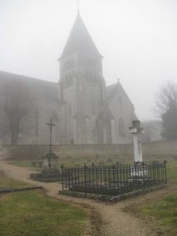 Il en fut ainsi lors de ma découverte de l’ancien cimetière paroissial de Châteauvieux : les modestes ruines, dominées par le calvaire et la tombe de Royer-Collard, dans une brume fantomatique de début de journée d’hiver, constituèrent une jolie carte postale romantique pour l’oeil !