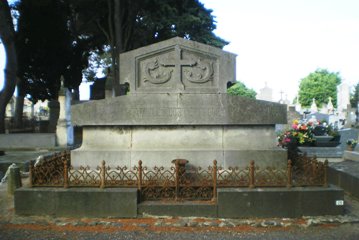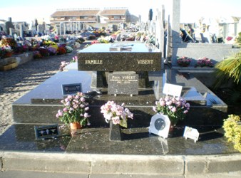 Sa tombe se trouve juste derrière le côté droit du Monument aux morts (carré 18).