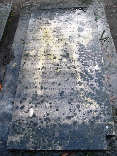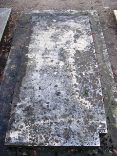 Immédiatement, je fais le relais de cette info sur mon site. Marie-Christine a localisé la tombe : malheureusement, celle-ci est totalement illisible. Elle me donne les informations suivantes : "la concession a été prise par sa femme, la comtesse Jeanne Merlin née Jeanne du Monceau. je ne sais pas si c’est le cas pour toutes les sépultures anciennes, mais son cas est éclaté en plusieurs dossiers d’où la difficulté à trouver l’info car en 1838 les enregistrements ne se faisaient pas comme aujourd’hui : dossier concession, dossier de la personne... D’où les difficultés pour la conservation de recoller tous les morceaux ... Ils ne savent pas l’inscription d’origine de la tombe, sachant que l’inscription d’un nom sur une pierre tombale n’a rien d’obligatoire. Qu’a fait graver la comtesse ? Mystère. Idem pour savoir si quelqu’un d’autre y repose. Apparemment non".