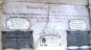 – Dans la tombe de Justin Ricou (+1902) cette épitaphe : Travailleurs ! Il fut des votres. Dans des parages lointains et malgré les vicissitudes de la fortune, il sut conserver le culte de sa Patrie et dans sa patrie il voulut mourir....