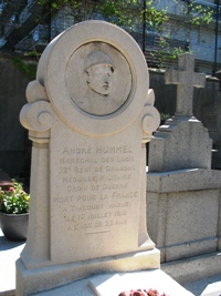 – Un médaillon par Emile Soldi sur la tombe du jeune soldat André Hummel.