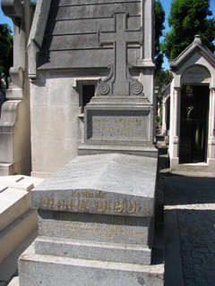 Son identité est peu lisible, caché qu’elle est par le rebord du tombeau portant les noms Charlin - Debiol. La tombe est ornée de deux médaillons sur le coté.