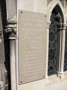 aujourd’hui régulièrement associées aux lesbiennes. Sa tombe, une chapelle en surplomb, reçoit à l’évidence bien des visites : des objets et cartes y sont régulièrement déposés, une boite aux lettres portant son nom y fut même fixée sur la porte. Sa plaque épitaphe (avec l’un de ses poèmes) fut récemment refaite.