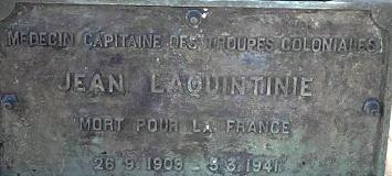 On y trouve également la tombe du Compagnon de la Libération Jean LA QUINTINIE (1909-1941). Médecin militaire, affecté comme médecin chef à l’hôpital indigène de Douala, il décida en juin 1940 de poursuivre la lutte et fit partie de ceux qui accueillirent à Douala le commandant Leclerc, envoyé du général de Gaulle. Il prit part à la campagne du Gabon jusqu’au 15 novembre 1940. De retour au Cameroun Jean Laquintinie continua de s’occuper de ses malades et, en décembre 1940, fut rappelé d’urgence pour participer aux opérations de Libye. Malade, atteint de paludisme, il n’en organisa pas moins, comme chef de l’antenne médicale, le service chirurgical de la Colonne Leclerc en préparation des opérations de Libye et participa à la première victoire française avec la prise de l’oasis de Koufra. Evacué sur Fort-Lamy au Tchad puis sur Yaoundé, il y succomba d’une septicémie.