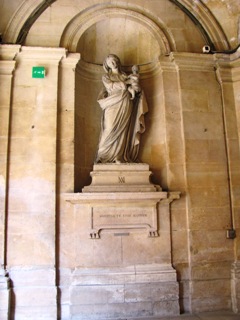 A St Denis, la Maison de la Légion d’Honneur occupe les anciens bâtiments de l’abbaye royale. Il ne reste plus rien de l’abbaye des origines, sinon le cloître attenant, très remanié, qui fut donné à la Maison d’éducation en 1809. Ce cloître est le plus vaste de France, chacune des quatre galeries mesurant 69 mètres de long et comportant 14 travées. La galerie nord, qui longe la basilique abbatiale, a servi de sépulture à quelques moines dignitaires. C’est ainsi le cas de Pierre-François BOUDIER (1704-1787) qui fut inhumé aux pieds de la statue dont il avait fait don, une Vierge à l’enfant sculptée par Pierre Surugue. Bénédictin, abbé de Saint-Martin de Séez et supérieur général de la Congrégation de Saint-Maur de 1766 à 1772. Il avait été l’auteur d’une histoire manuscrite du monastère de Saint-Vigor de Bayeux.