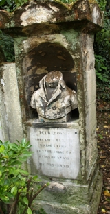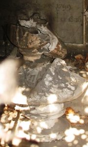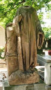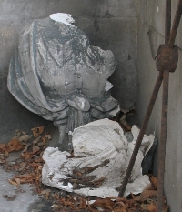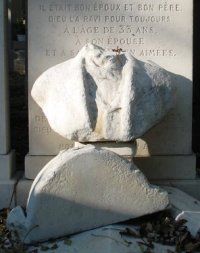 – La statue en terre-cuite par Gossin sur sa propre tombe est décapitée.