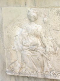 – Un buste en marbre sur le fronton de la chapelle Dea-Dieudonné.