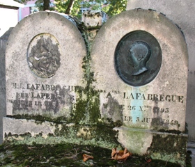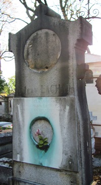 – Le médaillon en bronze par Guiraud sur la tombe Lacroix (coulures de vert-de-gris).