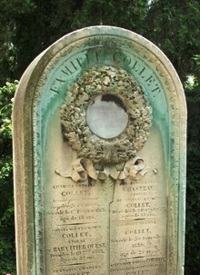 – Le buste en bronze par Emile-Louis Truffot de la tombe Collet a disparu (on voit encore les coulures de vert-de-gris).