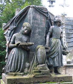 – Les deux anges en bronze par Tony Noël sur la tombe du peintre Thomas Couture (disparition récente).