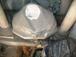 – La statue en marbre de la tombe Pineyro, déjà, très érodée, s’est effondrée.