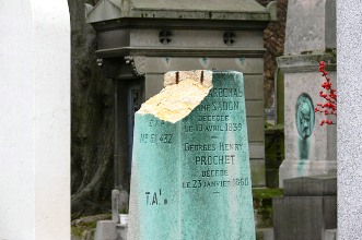 – Le buste en marbre par Denis Foyatier qui orne la tombe Gall est décapité : il n’en reste que le col.