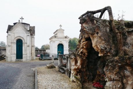 Le cimetière du Breuil, c’est aussi l’occasion de découvrir un art macabre particulièrement original. L’extravagance n’est pas en reste. À l’image de la tombe « Grotte de Lourdes », en hommage au célèbre lieu de pèlerinage. Un rocher creux reconstitué en fabrique au fond duquel la famille peut encore y déposer des gerbes.