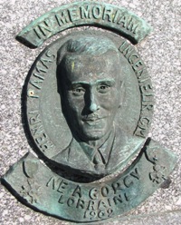 portée par un socle quadrangulaire, avec plaques de marbre sur lesquelles sont inscrits une date et le nom des obscurs héros.